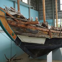 幸丸展示館は、小木港そばの市街中心部。工場の倉庫のような背の高い建物の中に佐渡海峡最後の和船という「幸丸」が展示されていました。