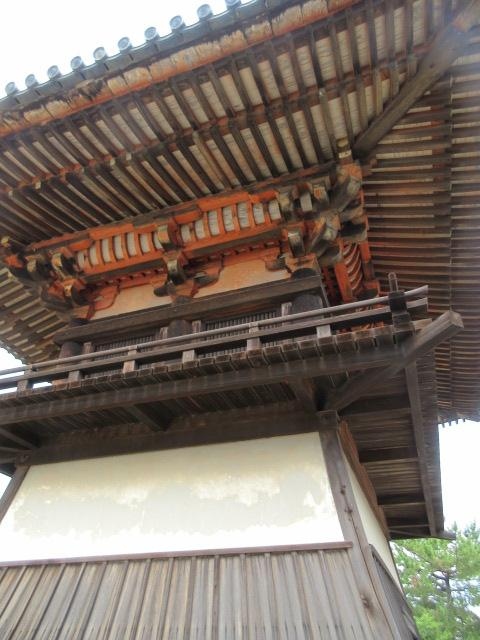 奈良の斑鳩の法隆寺の東院に行きました。その中にある建物です。袴腰形式という形の鐘楼で、この形式では日本最古のものだそうです。たしかに普通の鐘楼とはちょっと趣が違く、言われないと鐘楼かどうかはわかりにくいですが、そり立った感じの作りはなかなか存在感がありました。鎌倉時代の再建といわれているそうです。