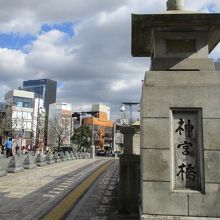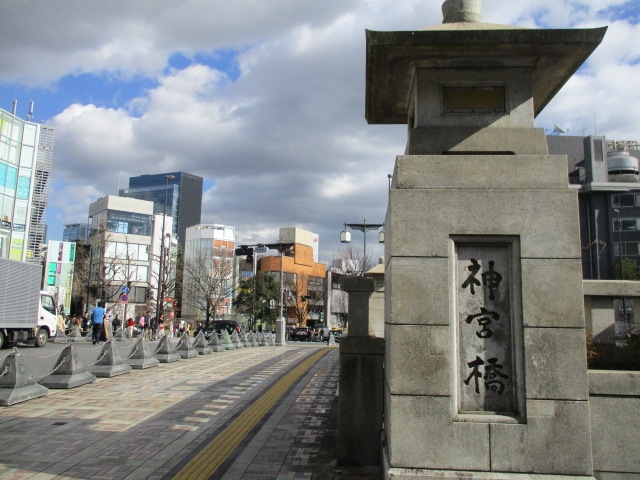 JR原宿駅表参道口から明治神宮に向かう前にある神宮橋に歩いて2分ぐらいで着きます。神宮橋は大正9年明治神宮が創建された時に架橋され、現在の橋は昭和57年に架橋されました。初代の石親柱(石灯篭)、銀杏模様の石畳は見ごたえありますので訪れることをお勧めします。歩道は広く、ビジュアル系ロックバンドのコスプレの若者達が集まり音楽とファッションを楽しみ賑わっていました。重厚感のある橋でパワースポット明治神宮へ続く厳粛さを感じました。
