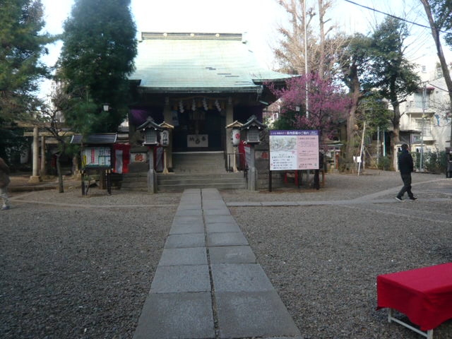 長い石段が続く階段を昇ると、氷川神社の広場になっています。