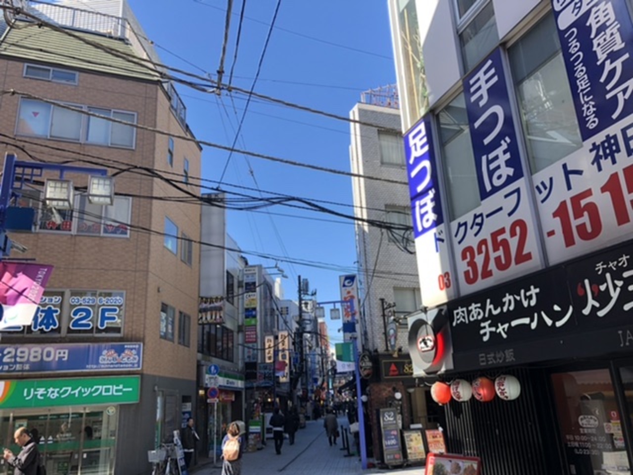 JR神田駅の西口からすぐのところから西に向かって伸びている商店街です。