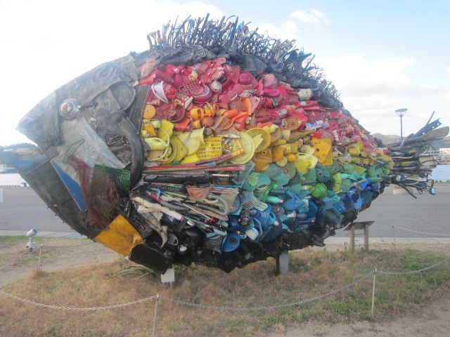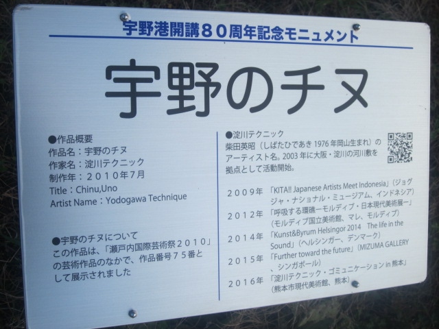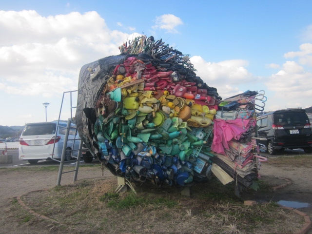 間近で見ると、日常生活で生じる廃品をアートに昇華しているその芸術性に感動してしまいます。とてもカラフルで目立ちますので、SNS映えする作品だとも思いますが、最近は知名度も上がっていて、まさに宇野のランドマークとしての存在感が、近隣の他の作品と比較しても圧倒している風情でした。