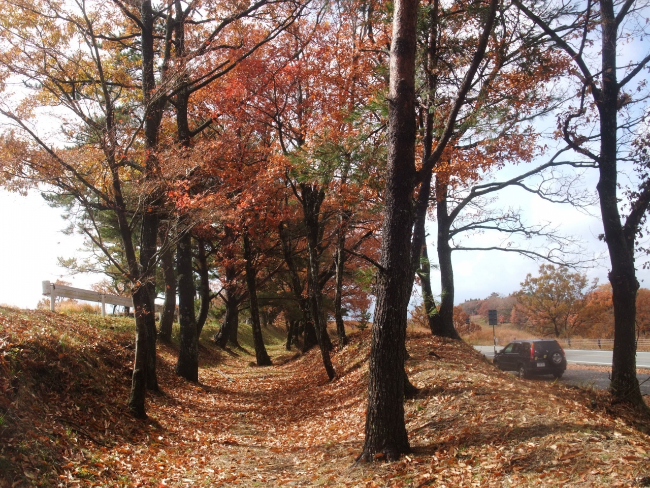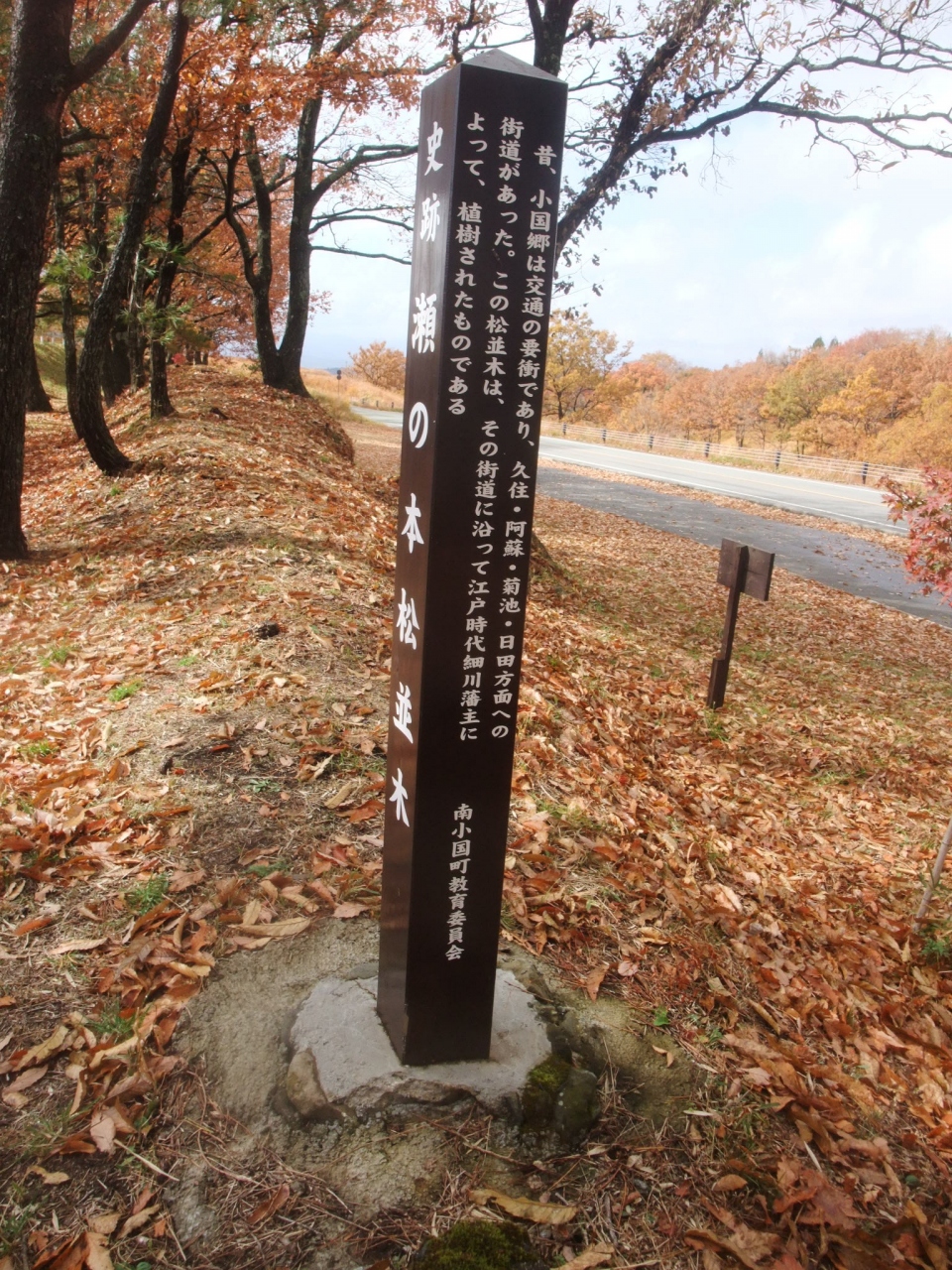 今回は瀬ノ本高原の「古の道」を歩きました。442号線沿いの「史跡 瀬の本松並木」の碑のある所は、参勤交代にも使われた古の道が残るところです。午前中は降っていた雨もすっかり上がっているので、少し散策しました。約1kmに渡り今も残るこの松並木は、江戸時代細川藩主によって植樹されたものだそうです。小国郷は交通の要衝で、久住・阿蘇・菊池・日田に通じる街道がここを通っていたのだそうです。歴史的にも重要な街道が通っていた瀬の本高原、浪漫を感じます。