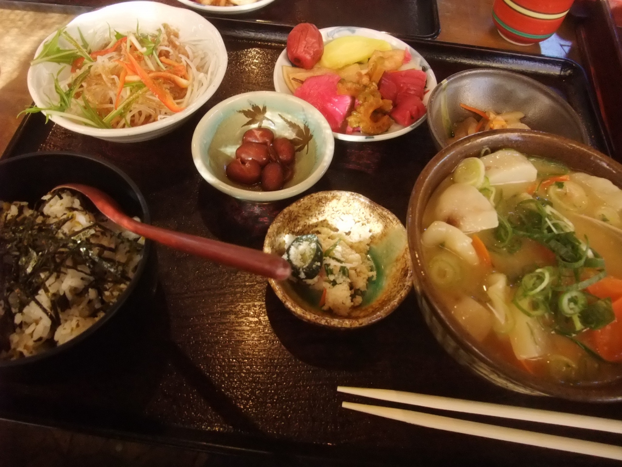 私たちは今回、夫は赤牛丼(1800円)を頼み、赤牛料理を満喫、私は郷土料理の高菜とだご汁セット(1300円)を食べました。美味しかったです。