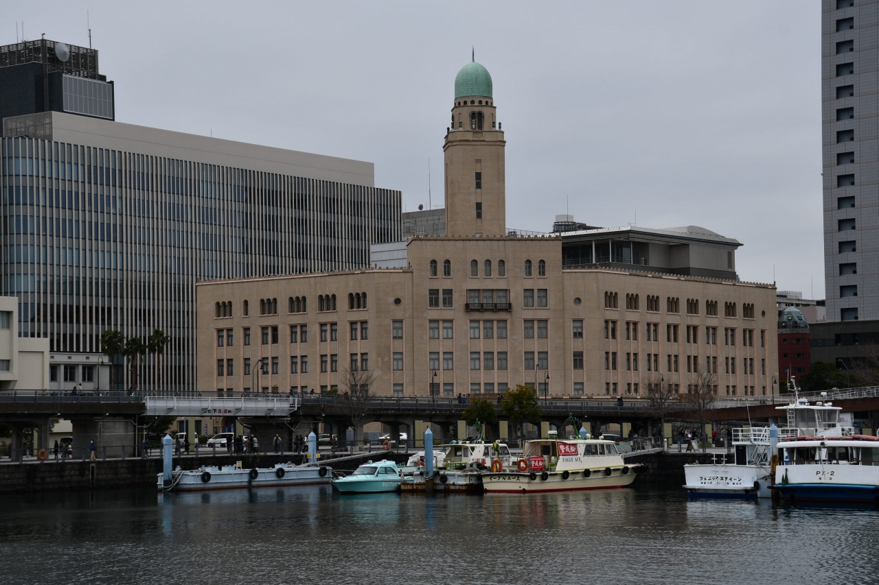 大桟橋から見える税関の建物は、名建築です。左右は非対称ながら、中央に聳える塔が優美です。海に向かって建っているので、大桟橋から眺めるとちょうど良い角度です。根岸線の関内から歩くと、二十分ぐらいかかりました。