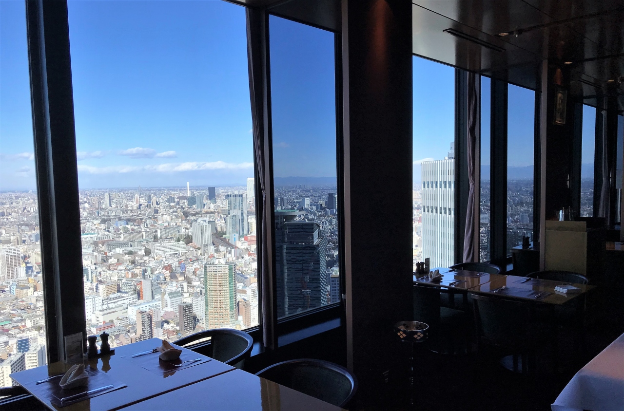新宿三井ビルの高さは最頂部225メートル。竣工してしばらくは日本一高いビルだったそうですが、新宿三井クラブは、そのビルの54Fにあります。因みに最上階は55F。
