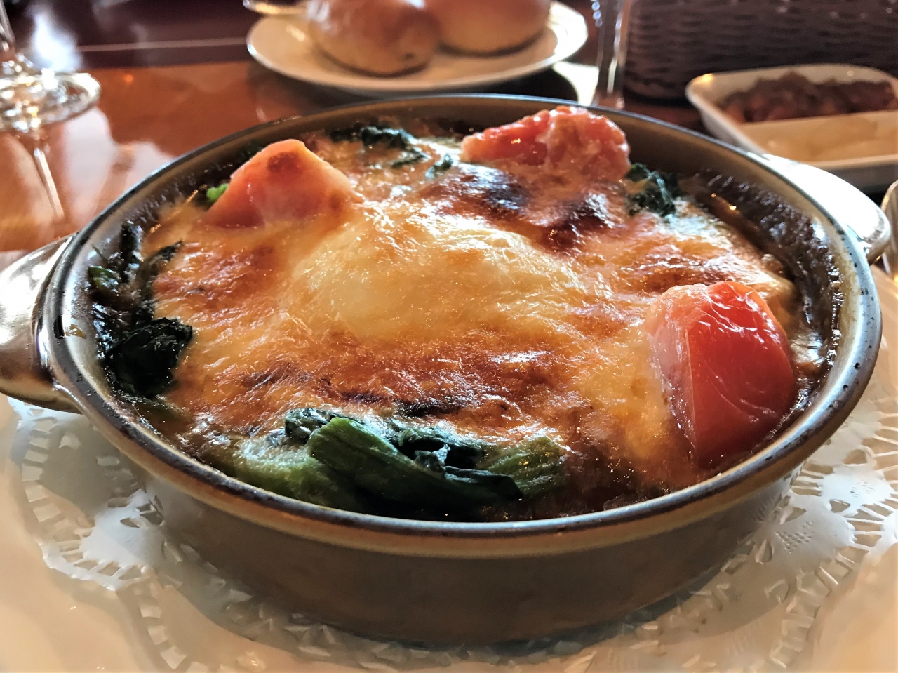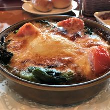 今回戴いたのは「野菜とチーズの焼きカレー」。ランチセットとしてコーンスープ、野菜サラダ、コーヒーがついて1250円でした。