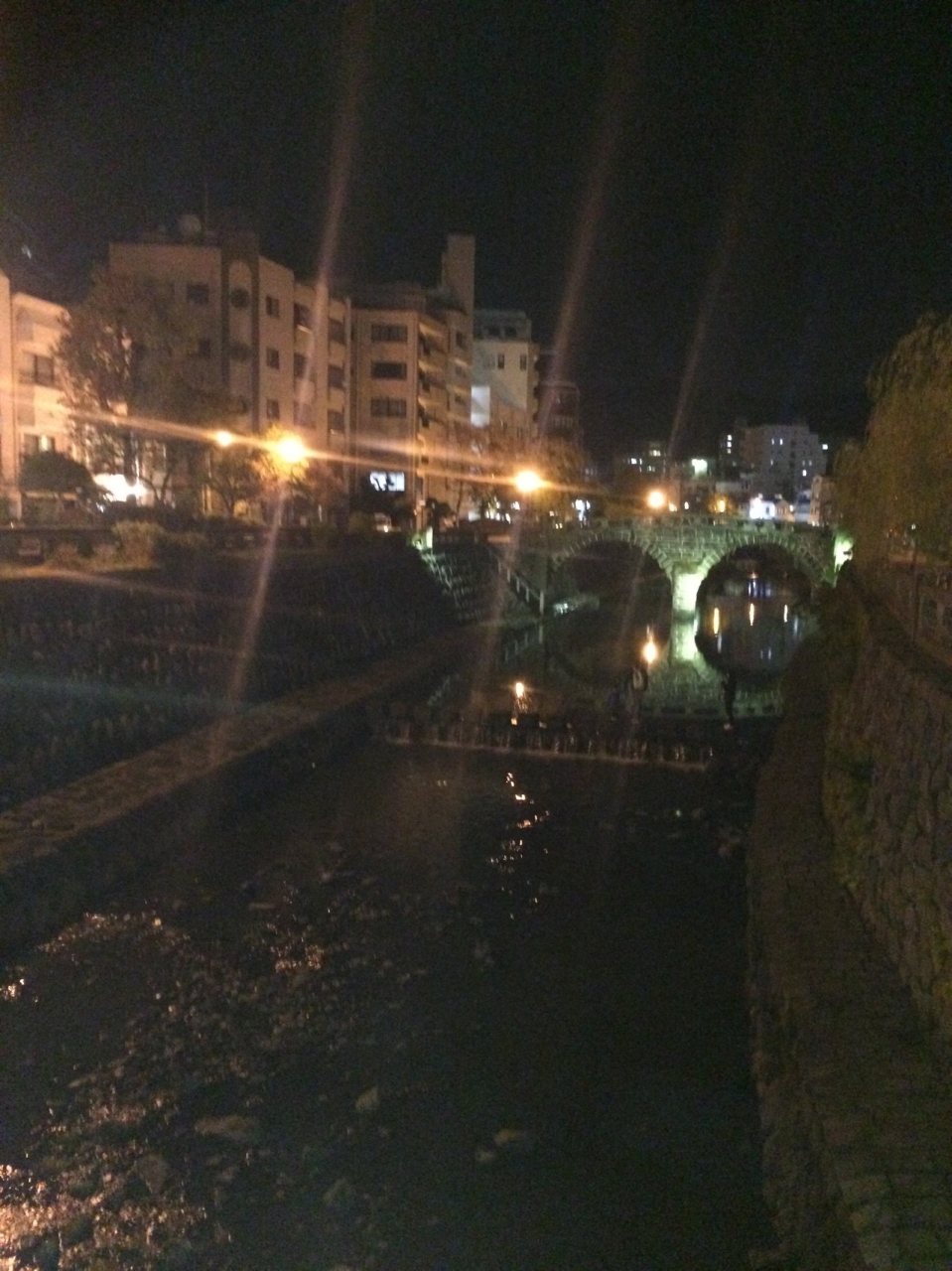 長崎新地中華街のそばを流れている川でした。昔からの橋が幾つかかかっていて、新地と中華街地を結んでいる光景が珍しかったです。実際に川で足を入れて遊んでいる子連れの家族もいたので、水は綺麗なんだと思いました。