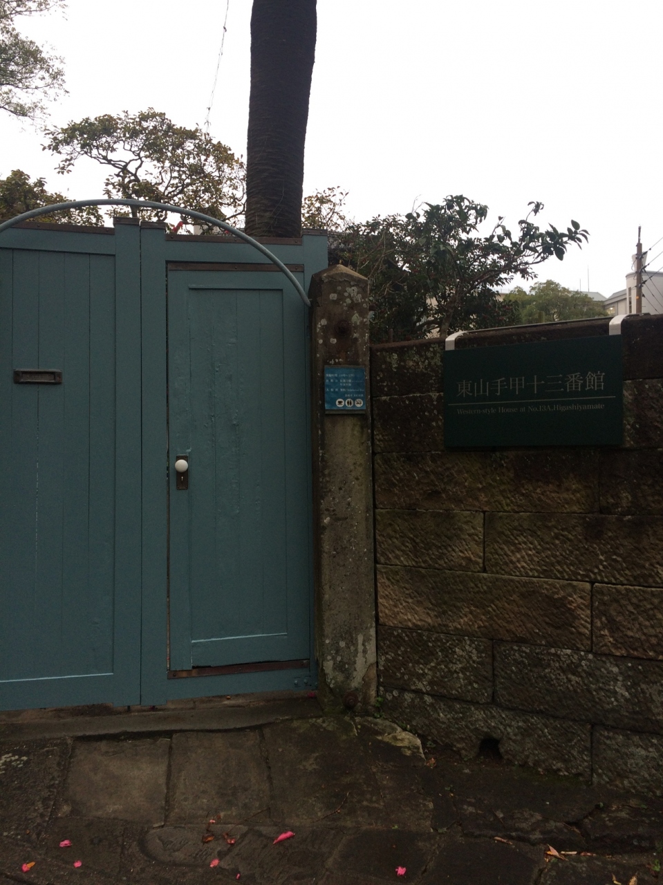 長崎の世界遺産のグラバー園に向かう時に、オランダ坂を散策し、坂野上のほうにありました。明治時代に建てられた2階建ての木造建築になった洋館です。表札も入っています。東山手十二番館もありますが、別です。月曜は閉館でした。