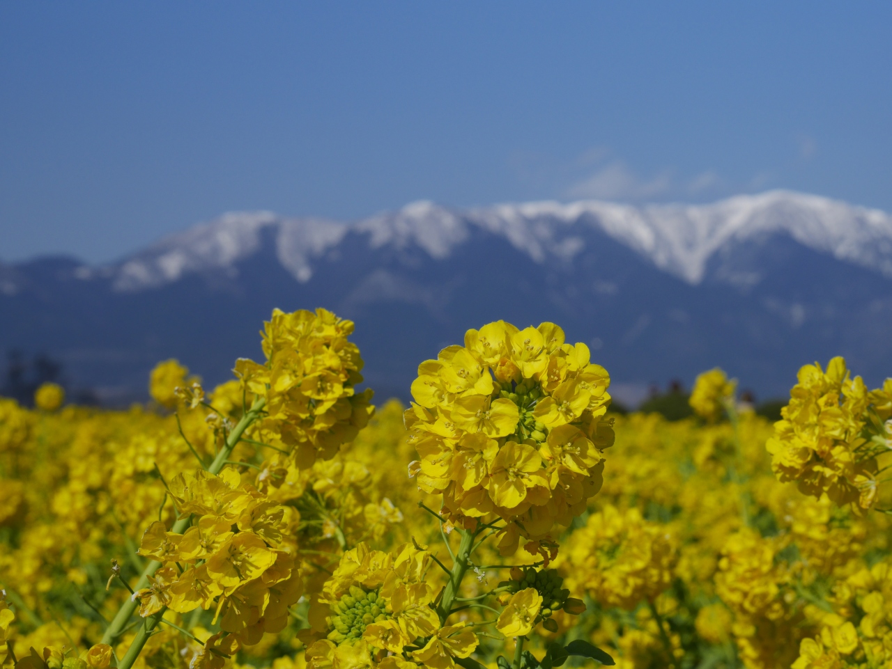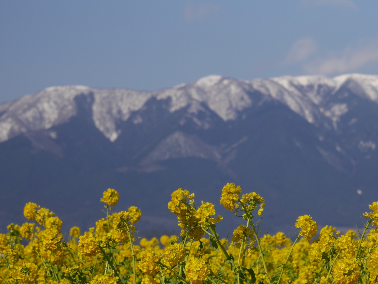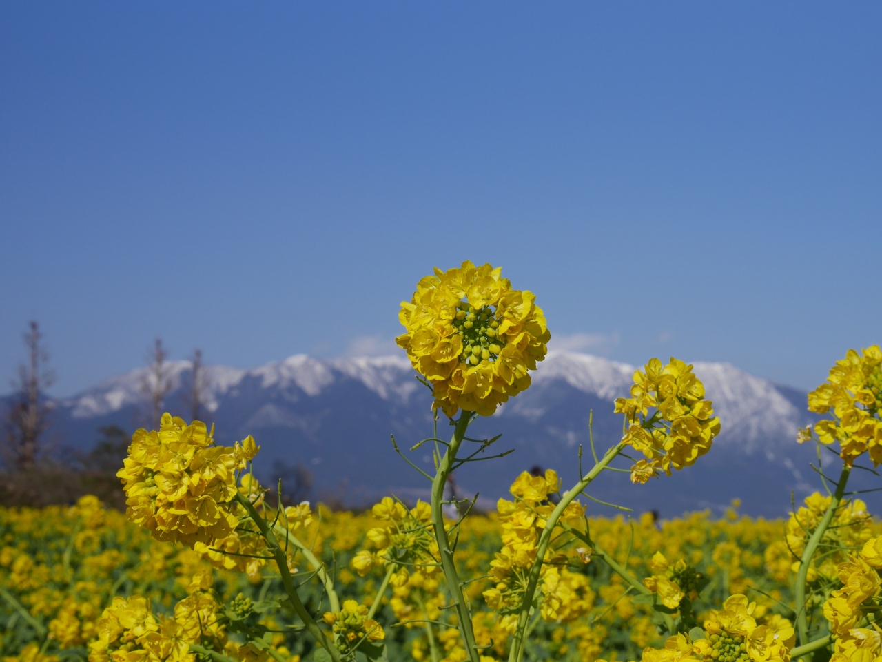 今回は菜の花が満開になる時期で、天気が良い日を狙って行って来たので、雪山も綺麗に見えて良かったです。