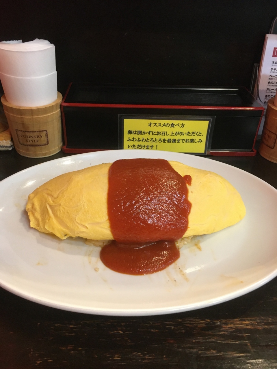 大阪駅前の安ウマごはんで検索するとこちらの店がヒットしたので行ってきました♫食券を自分で買ってから座席に座り、お冷やもセルフのスタイルです。オムライス自体は美味しかったのですが、お皿に失敗して拭き取った跡が.....どうせ拭き取るならもう少ししっかり拭き取って欲しかったです。苦笑