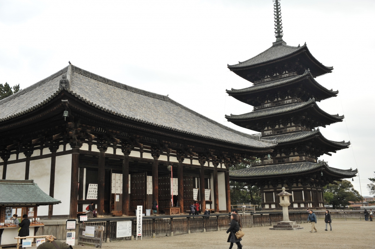 興福寺の伽藍配置は中、東、西と三つの金堂があったという。最近、中金堂が再建されたが、これまでそのことを意識させるのは妙にバランスの取れない場所にある東金堂だけだった。長年にわたって興福寺の伽藍配置を主張し続けたともいえる。初代は奈良時代の建築だが、現存しているのは戦国時代の築だという。内部は薬師如来像をはじめ圧巻だ。入館にはここだけのチケットのほか、国宝館との共通券などがある。