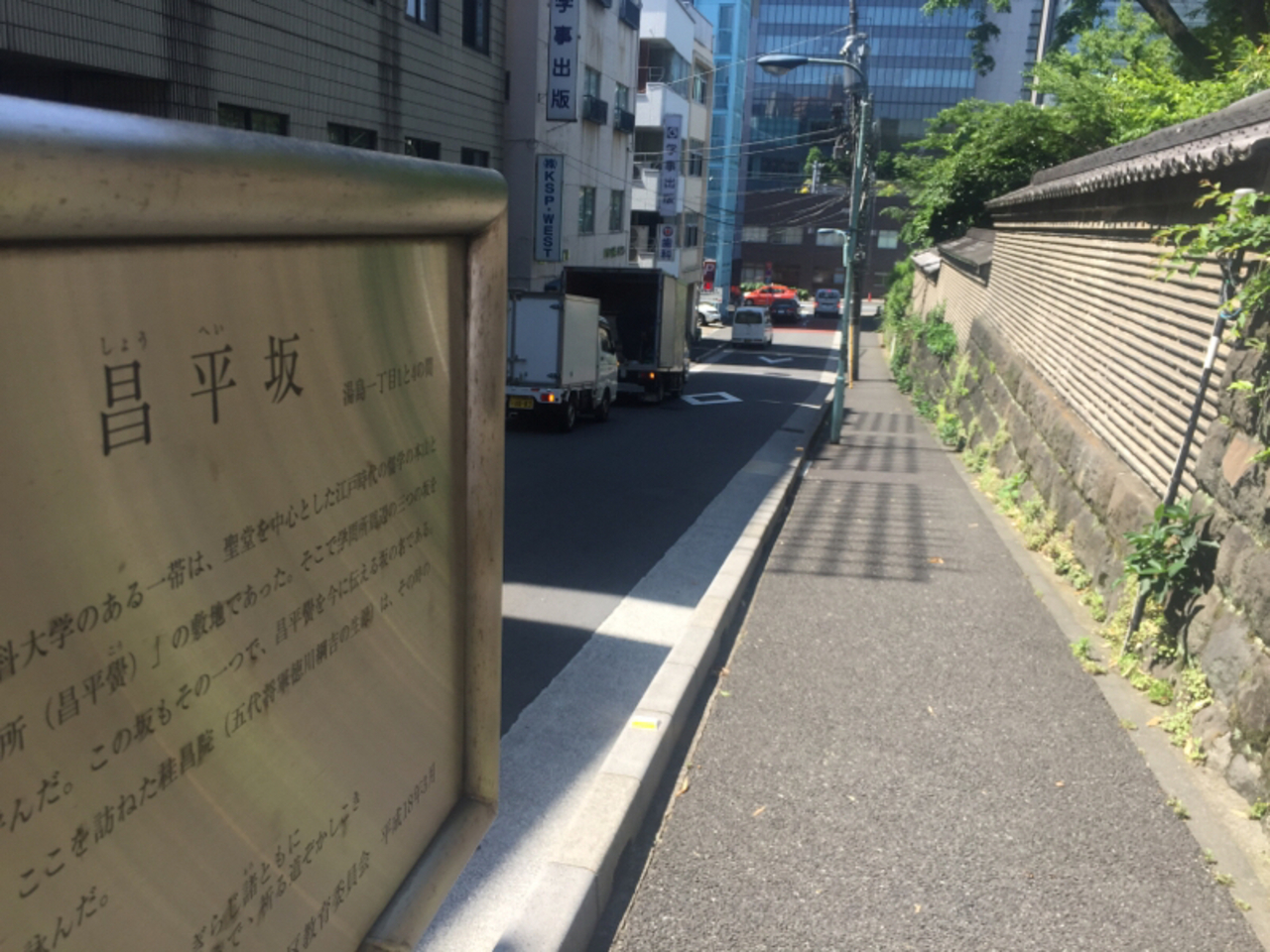 正確には湯島聖堂の秋葉原側の坂ですが、いまいち場所は特定されていないようで、神田川沿いの相生坂も昌平坂と呼ぶようです。