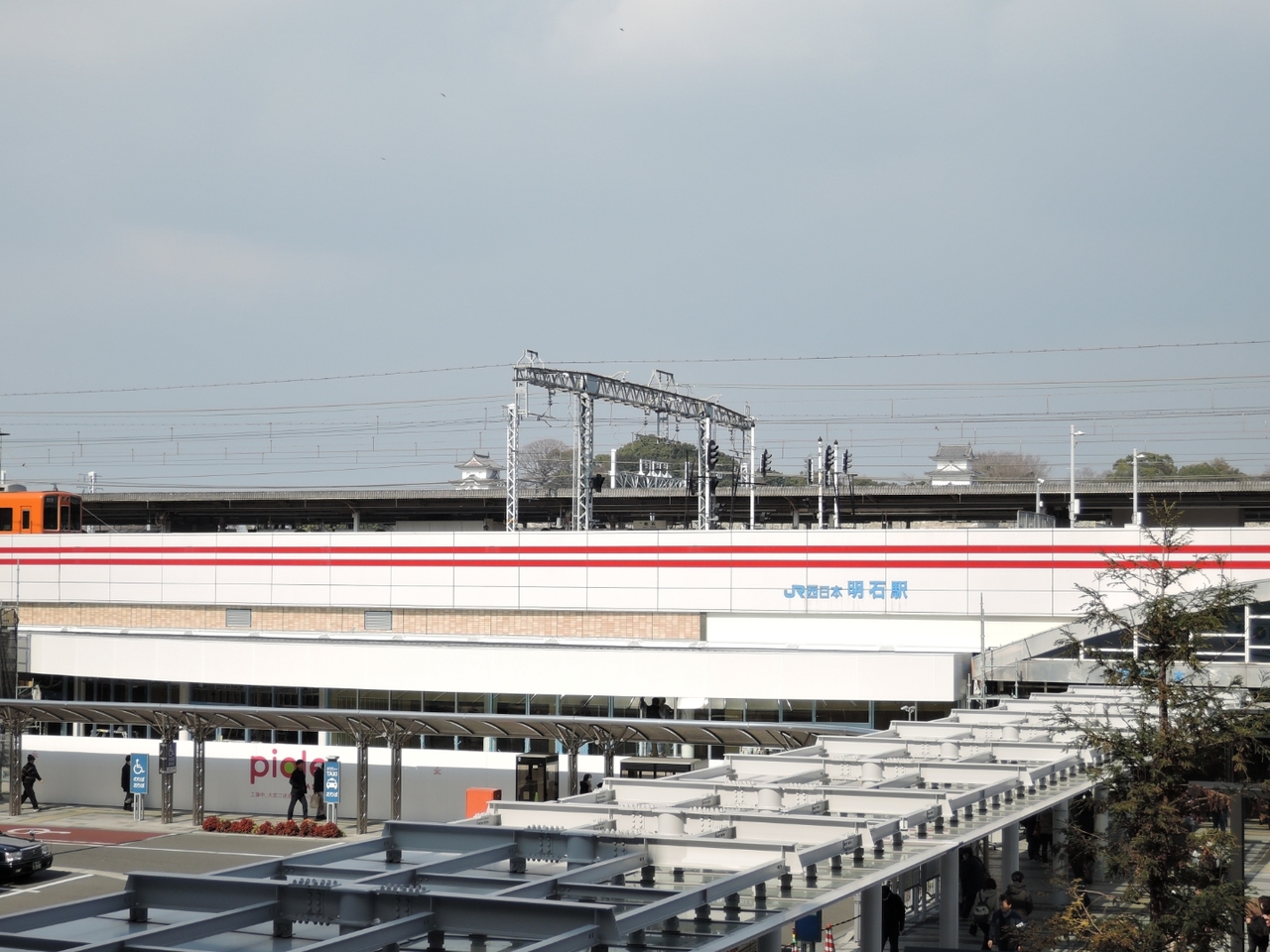 通常お城がある場合は、○○城という表記が多いですが、こちらは県立明石公園(明石城)と表記されています。珍しく感じました。駅から見えた明石城は小さめですが、2つあり、面白く感じました。有名な魚の棚商店街とは、駅から逆の方向になりますので、ご注意ください。