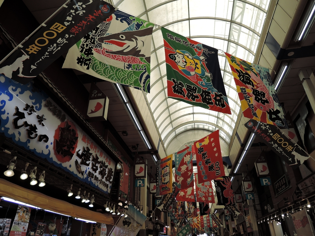 10数年ぶりにたまたま訪れました。大漁旗が上からたくさん吊るされており、また観光客も多く活気がありました。人気の玉子焼き屋さん(いわゆる明石焼き)は行列が出来ていたり、天ぷらや練り天、くぎ煮や生魚等も売られていました。食べ歩きもできます。