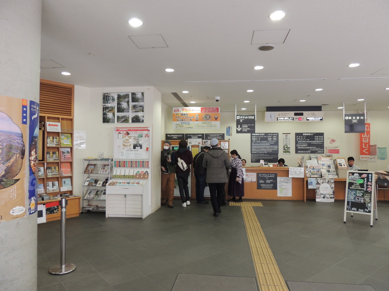 大街道からロープウェイ街を進むと、左手に乗り場があった。乗り場の建物がエスカレーターでチケット売り場に上がるようになっていて、大きく立派な建物だった。自販機で往復チケットを購入。寒かったので、リフトではなく、ロープウェイを利用した。