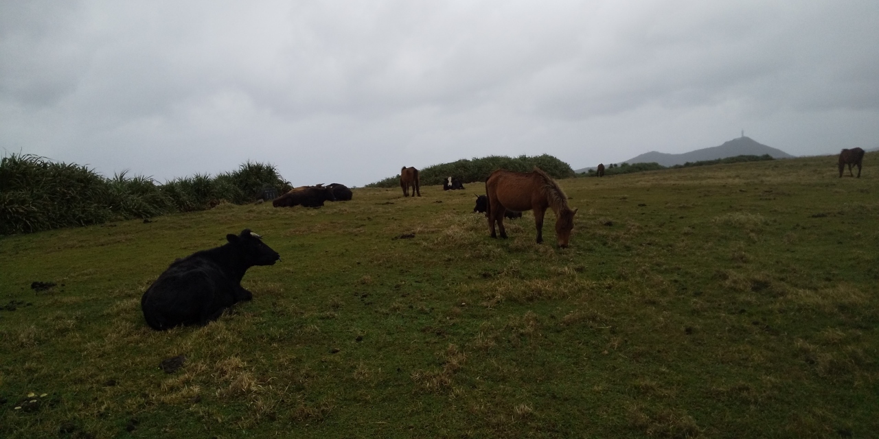 覚悟がいります。与那国馬や牛たちがのんびり草を食んでいます。