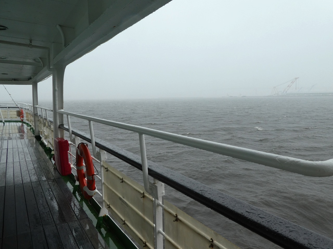 階段なんかは昔の船だけあって、たしかにせせこましいですが、甲板の開放通路なんかは客船そのもの。レストランが船になった船とはさすがに違います。船好きにもこたえられません。