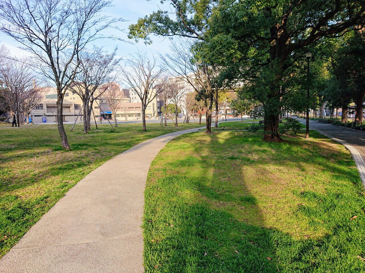 芝生の広場や運動スペースがある、市民の憩いの公園といった感じです。