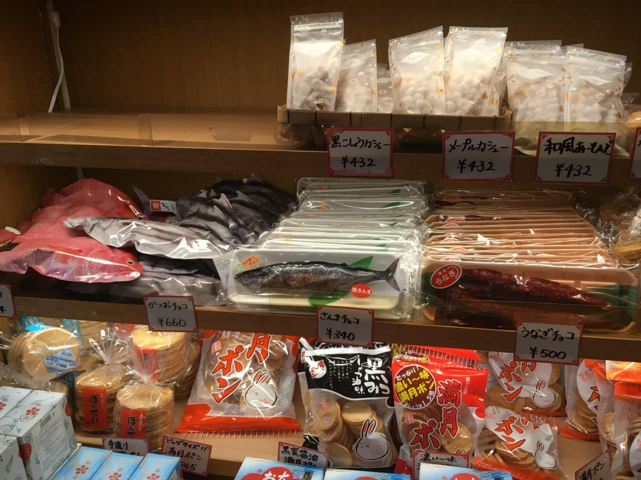 JR有楽町駅前にある交通会館内の大阪のアンテナショップです。今回はアンテナショップのスタンプラリーBOOKにスタンプを押すのも楽しみの一つだったのですが、こちらのお店は不参加のようで残念に思いました。店内にはバレンタインデー関連でしょうか、受け狙い?の魚の塩焼きのような形をしたチョコレートとか、面白いお菓子などがありました。イートインコーナーもありました。
