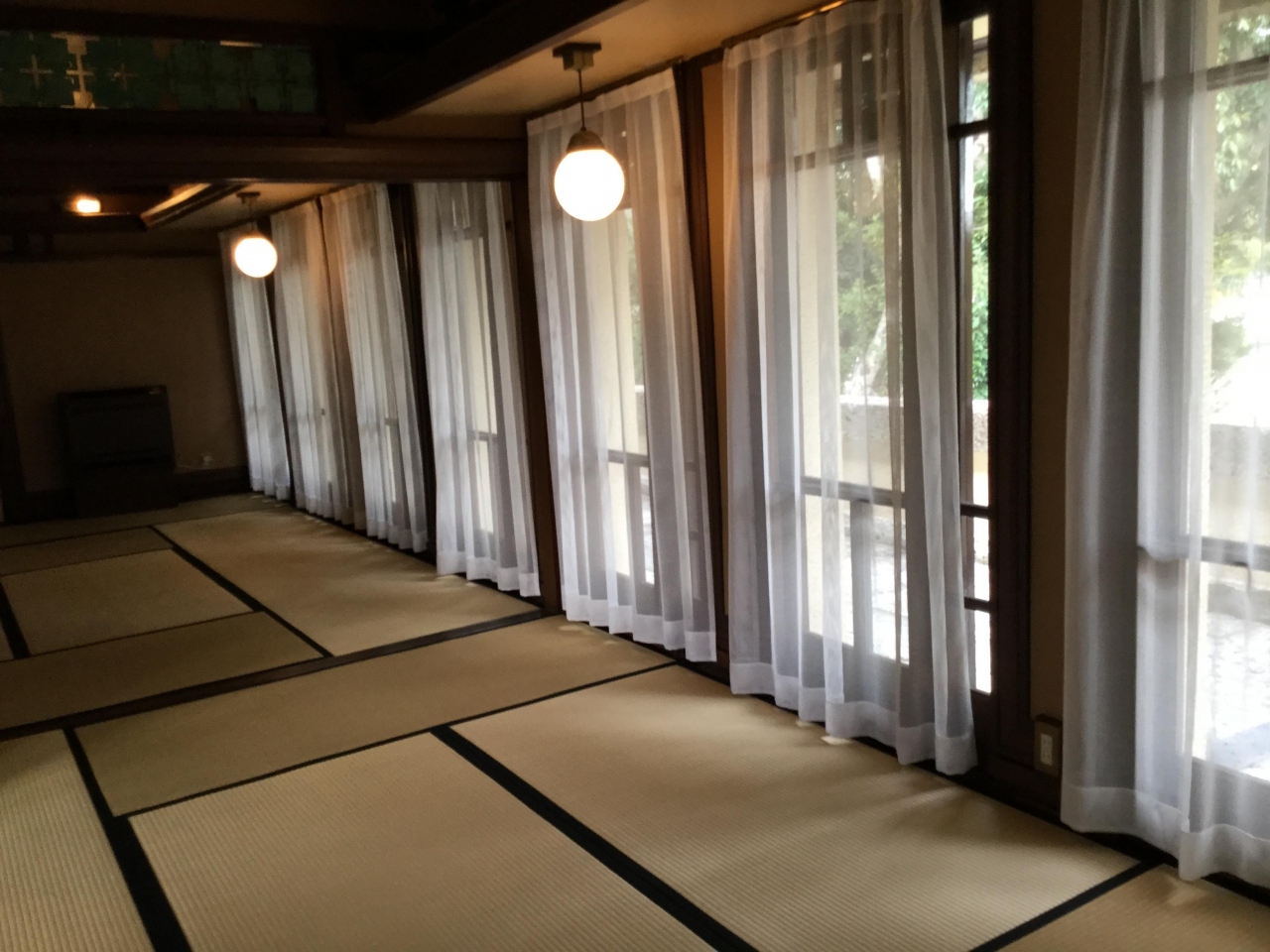 阪急電車の芦屋川駅から歩いて15分、ライト坂を登っていると左手に看板が見えて素晴らしい洋館が見えてきます。土日と水曜日しか空いていないので、なかなか行けなかったのですがやっと実現できました。建築家のライト氏の精神が宿っているような、うっとりする洋館で、すっと背広姿の紳士がそこにいるような空間でした。洋館の中に和がしっとりと混じっていて、深い深い味わいが滲み出ていて、時間を忘れるひと時でした。帰り道に気づいたのですが、周りに小さな家が一つも無いのです。まさしく芦屋の高級住宅地でした。