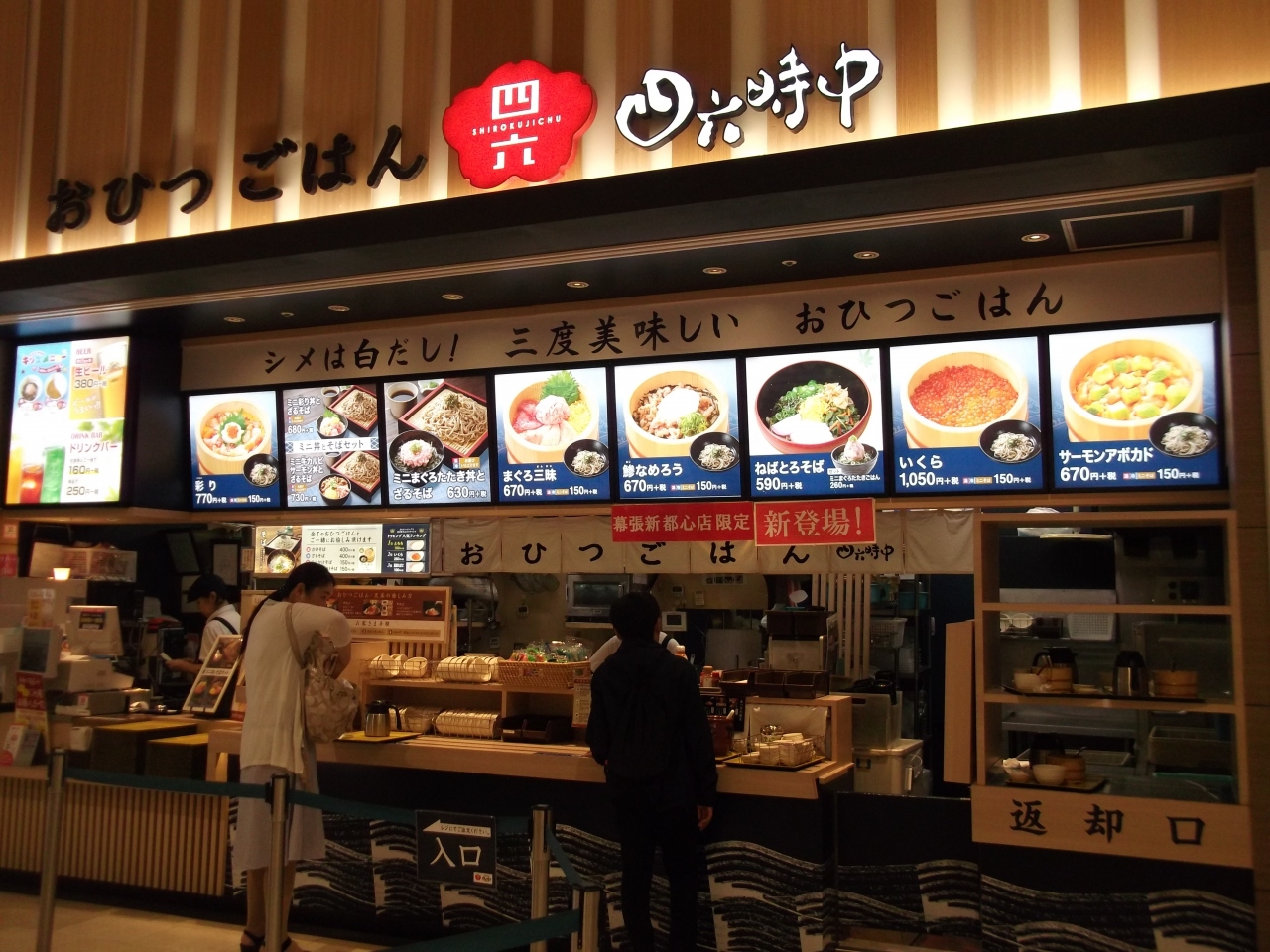 イオンモール幕張新都心店ファミリーモール3階のフードコートにあります。お昼に、サーモンといくらのどんぶりをいただきました。お店おすすめの食べ方に従い、最初は普通に海鮮丼としていただき、次に香味を加え、最後は白だしをかけてお茶漬けにすれば、ひと品でバラエティにとんだ食事を楽しめます。