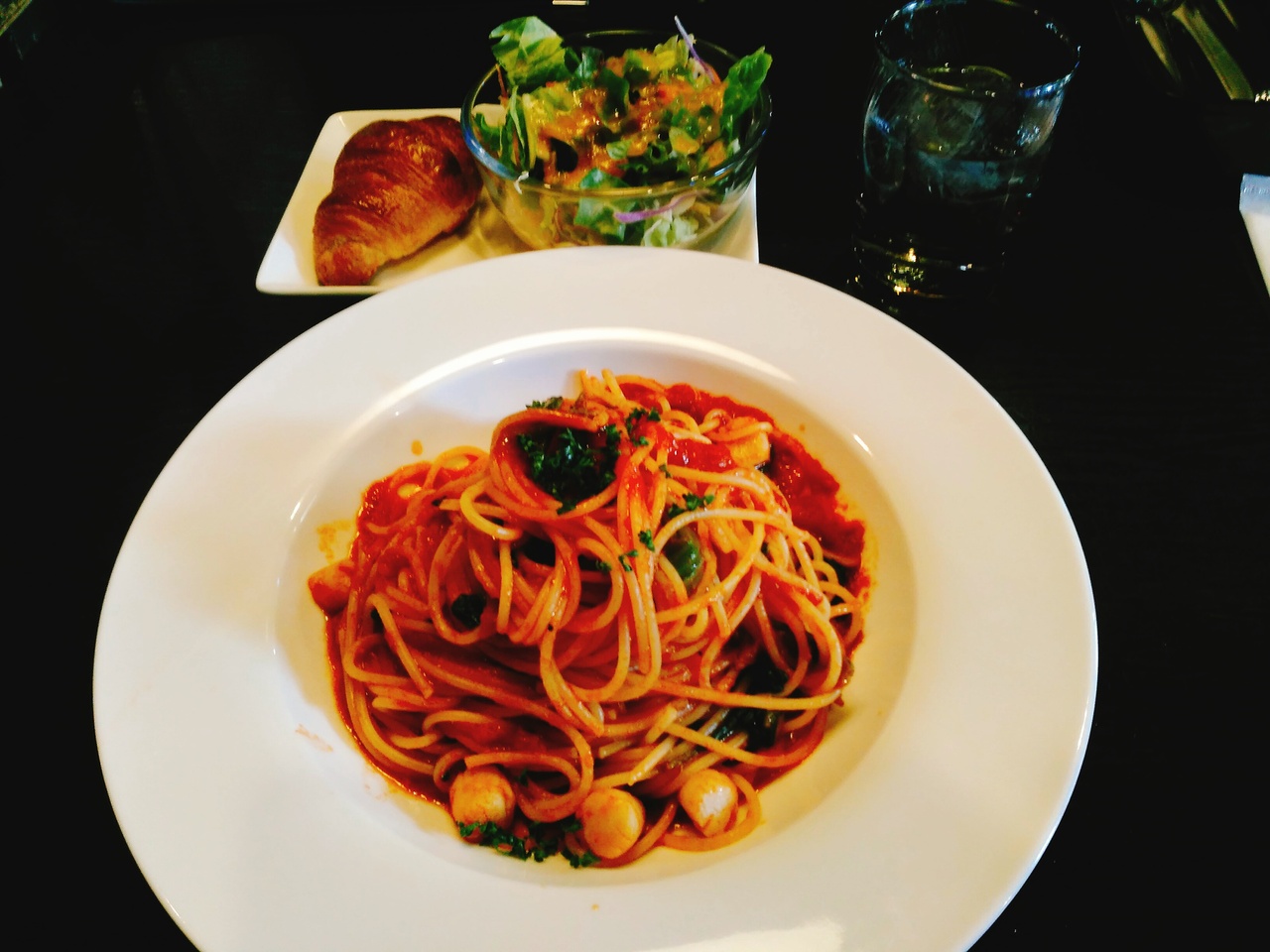 国道4号線古川バイパスの西側に道路入った所にあります。パスタ中心のイタリアン屋さんで、ドリア、グラタン、ピザ、オムライス、ステーキやハンバーグもあります。今回はランチでの利用でした。パンとサラダ、ドリンクバーがついた貝柱とほうれん草のトマトソースのパスタセット1080円をいただきました。麺は程よい固さの残るゆで具合で美味しかったです。