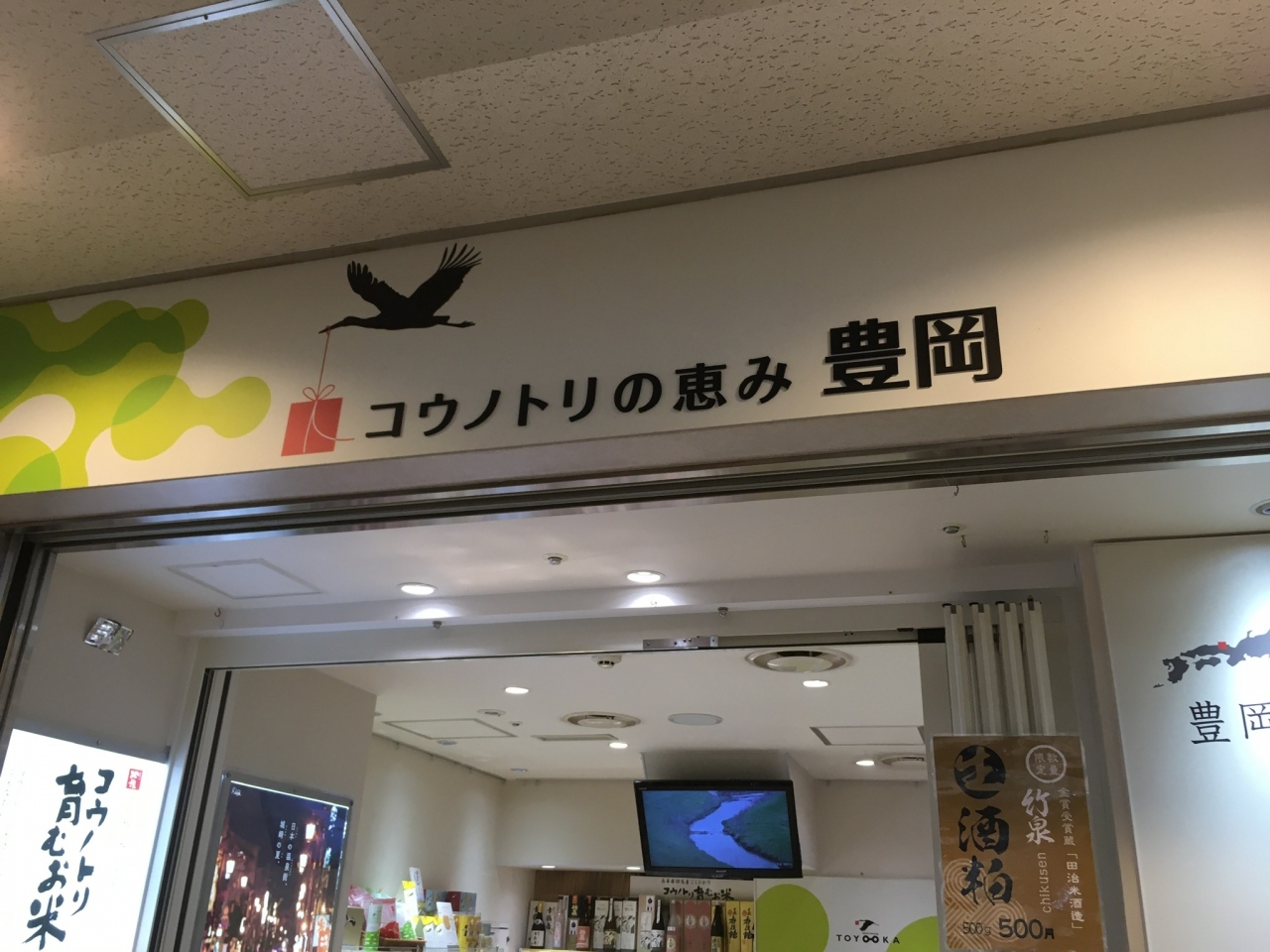 JR有楽町駅前の交通会館内1階にある兵庫県豊岡市のアンテナショップです。「豊岡市」について全く知らなかったので調べてみたら、兵庫県の日本海側で、かなり昔に行った「城崎温泉」のあるところだと分かりました。店名の「コウノトリ」についても『コウノトリも住める街を目指している』そうで、『コウノトリを絶滅から救おうと1965(昭和40)から豊岡で人口飼育がスタートした』そうです。お店はとても小さなアンテナショップで、「むらからまちから館」の並びでした。商品は「コウノトリ育むお米」とか、他には但馬牛の関連商品や伝統工芸品などもありました。空いていた事もあってお店の方は親切でした。スタンプラリーのスタンプもコウノトリでした。