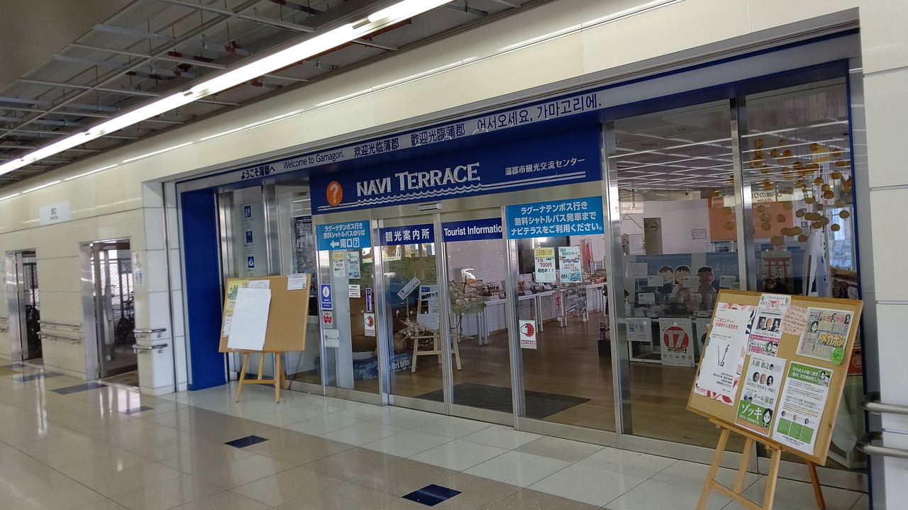 JRと名鉄の蒲郡駅は改札を出るとつながっており、そのエリアにあります。蒲郡にはラグーナテンボスだけでなく、西浦温泉や三谷温泉などの温泉、グルメでは蒲郡みかんやメヒカリなど盛りだくさんのスポットや名産品があるので、詳しい情報をここでゲットしましょう。