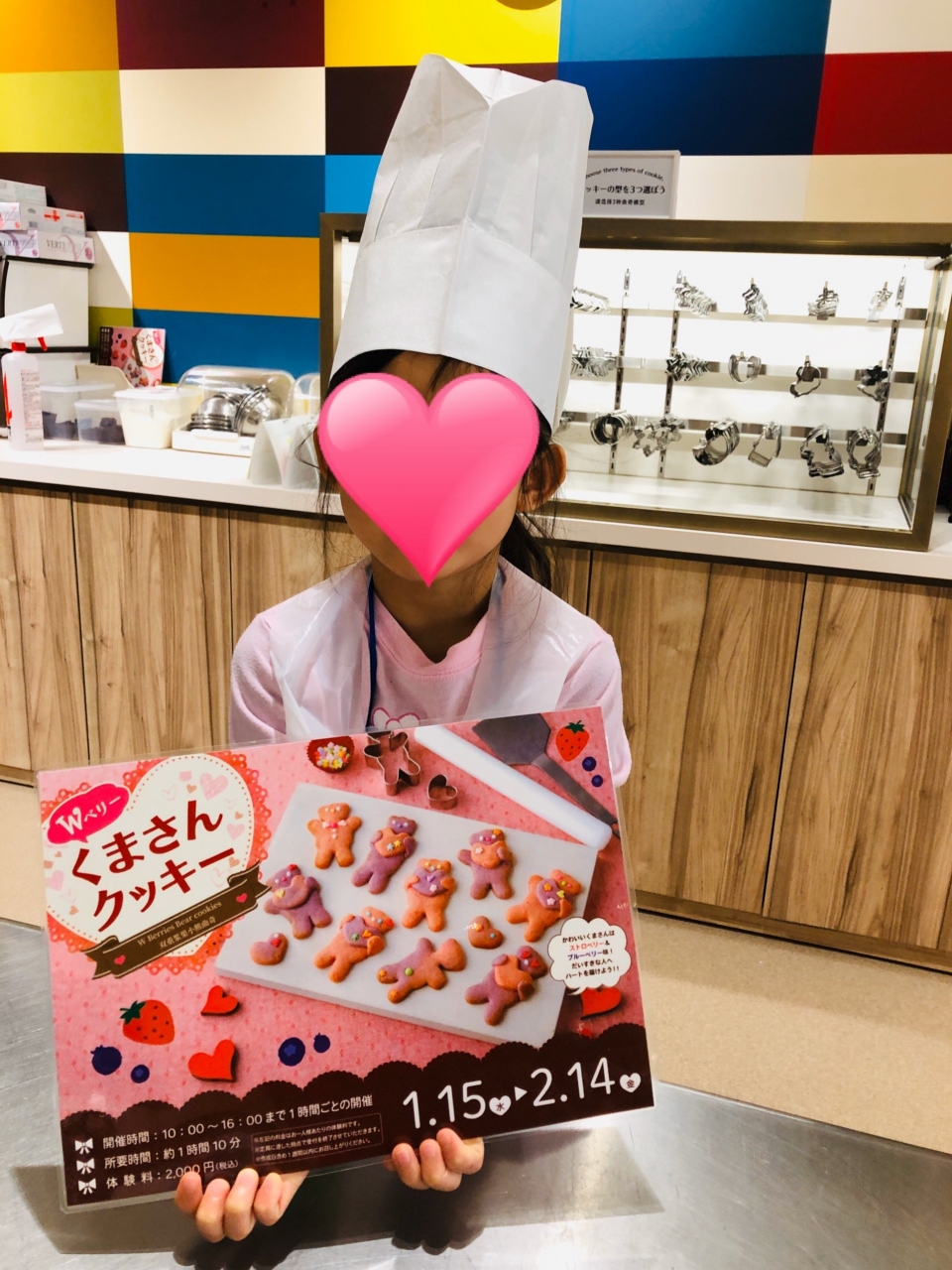 娘も3歳のときは雪遊びだけでしたが、5歳になっていよいよクッキー作りに申し込んでみました。種類が豊富ですごーく迷いましたが、期間限定のWベリー(ストロベリー&ブルーベリー)くまさんクッキー教室にしました。