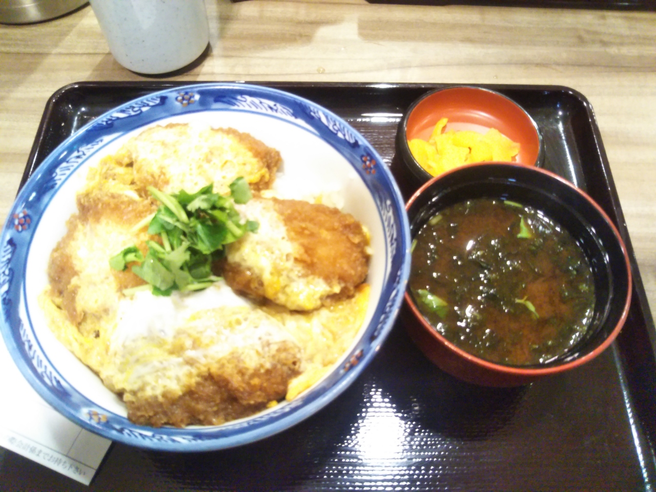 あべのハルカス地下2階の食堂街にある丼もの専門店です。今回はカツ丼を注文。アオサ?入り赤出し・お新香がついて600円とリーズナブル。カツはヒレカツのような一口サイズのものが4枚のっててボリューム感も十分。自分的には一口サイズではない方が好みでしたが、このコスパはいいです。