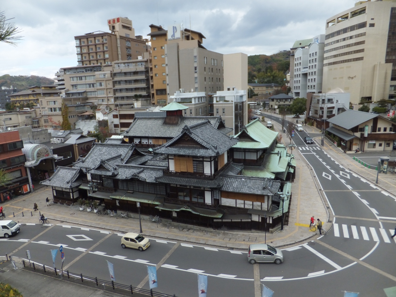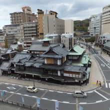 冠山駐車場から道後温泉本館に行く際に利用する通路です。駐車場が丘の上(高さ20m位)にありますので、本館を見下ろす撮影には最適です。振鷺閣も綺麗に撮れます。撮影スポットにしては人影もまばらなので、穴場と言えます。