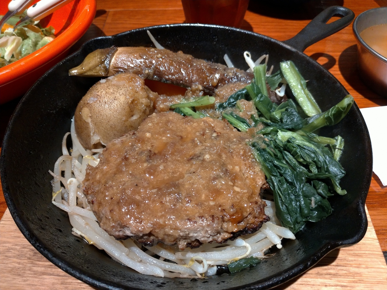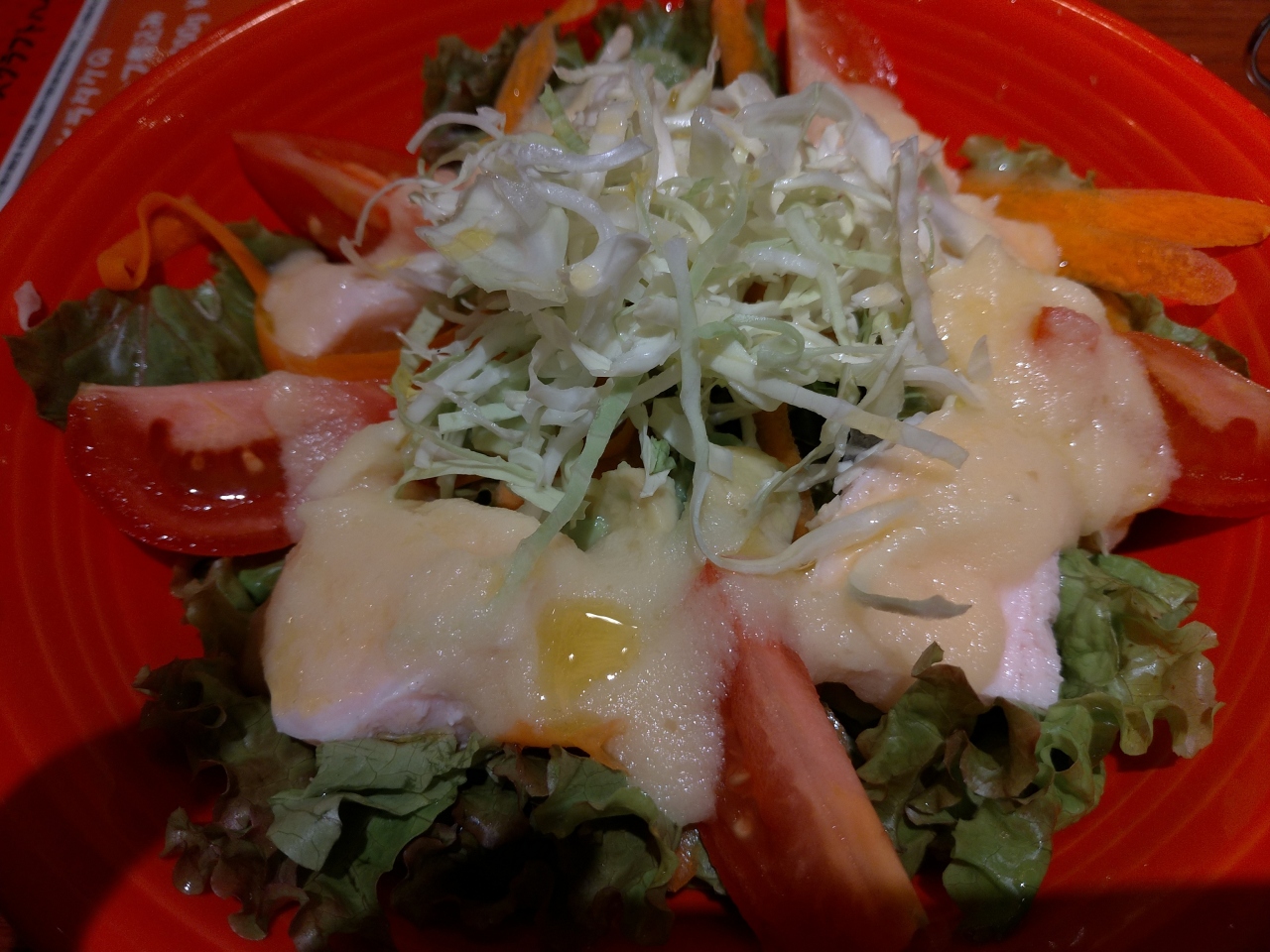 サラダやドレッシングは手造り感があります。ハンバーグはボリュームがあり満足できました。お値段はリーズナブルが感があります。ドリンクバーに珈琲がないのは少し残念。