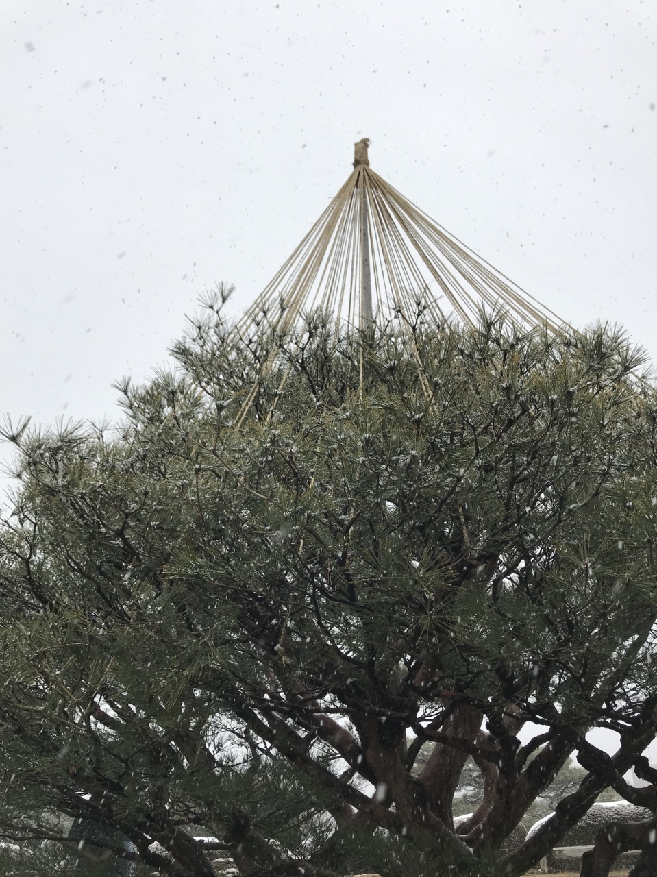 年々雪の量が少なくなっている金沢。今年は2月に入っても積雪ゼロが続いていましたが、ようやく雪が降り、訪れた日は雪景色となっていました。降る雪が重く、この地で雪吊りが必要になった理由が分かったような気がします。