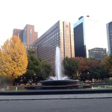 日比谷門から入ってすぐ、第二花壇の隣にあります。大噴水の名に相応しく12mもの高さの噴水を始めいくつかの演目があるようなので訪れるたびに違う光景が見られるかもしれません。噴水の周りは広々と作られているので背景のビル群も加えてゆったりとした気分になります。