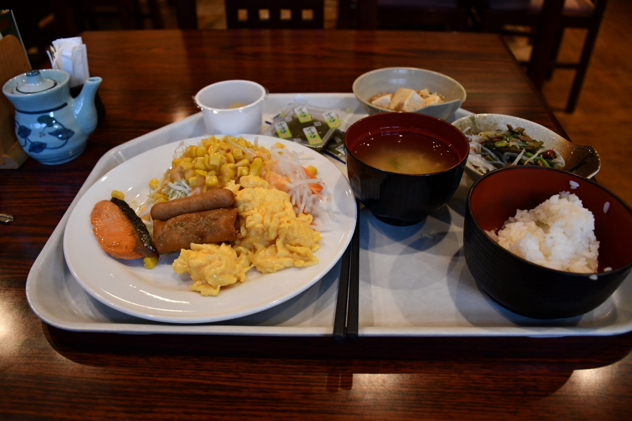 泊まった宿の朝食で利用しました。一階とは言いながら、大通りから入ると階段を数段降りる半地下のような構造です。副食の種類はほどほどで、味も合格点です。お昼も、夜も利用できるようです。夜は居酒屋が主のような感じです。