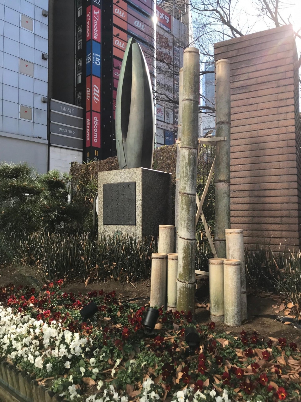 西条八十 詩碑は、東京都新宿区新宿3丁目、新宿東口アルタそばの新宿東口広場にありました。大きなオブジェだと思いました。