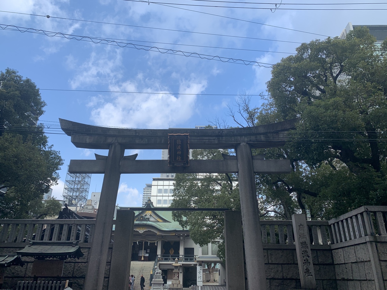 地下鉄御堂筋線の心斎橋~なんば間にある神社です。境内の周りには飲食店やアパレルショップなどがあり、現代と古が融合されています。