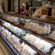 お惣菜系のサンドウィッチはよく見かけますがフルーツや生クリームたっぷりのスイーツ系のサンドウィッチの種類はこちらが一番多い気がします。