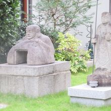 境内の芝生が綺麗に整備されています。そして左側には穴が開いた石像がありますが、これは七五三の時にお子さんを穴に潜らせると元気に成長すると言われています。