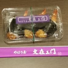 2軒目のあとでもお店がやっており、お夜食として飲んだ帰りに天むすを購入しました。持ち帰ったときにまだほんのり温かかったです。天むすは、食べやすいサイズで、酒のあてとしてもちょうど良い味付けでよかったです。