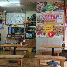コザのパークアベニューにある大衆食堂。英語と日本語がちゃんぽんしたような店内には、多数のメニューが貼り出されていて迷ってしまう。今回は、沖縄の焼きそばが食べたくてこちらを注文。少し辛めですが、これがなかなかはまる味。ホットソースをつけると味変してまたいい。シークワーサー入りのアイスティも美味。お店を切り盛りするお姉さんの印象もよい。DA PUMPのISSAも訪問しているらしく、「連続紅白出場おめでとう!」の張り紙が。なお、セルフサービスです。