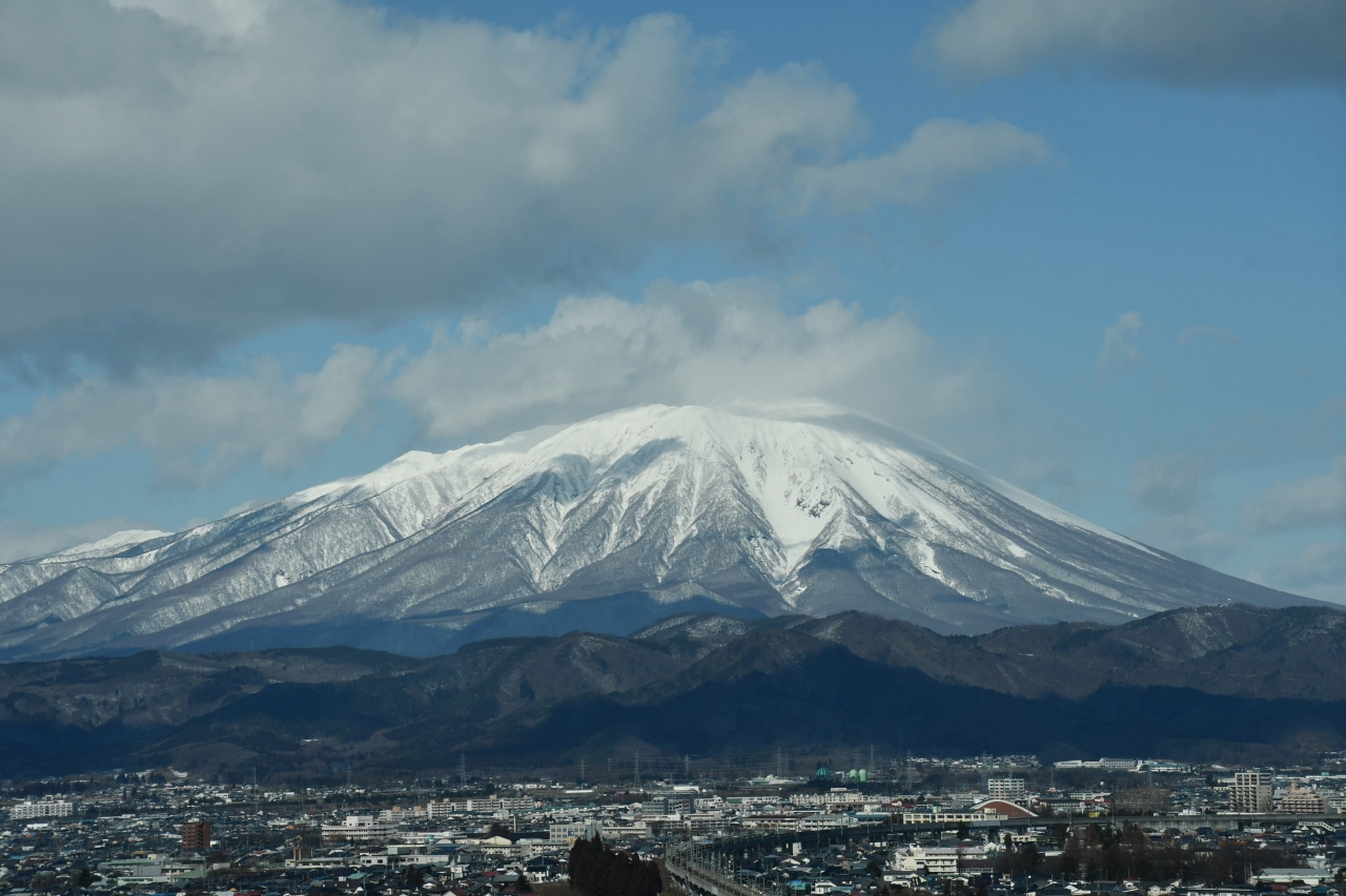 盛岡駅西口、バス乗り場の隣という場所にマリオスという建物があります。二十階に展望室があって、天気の良い日には、岩手山や盛岡市内を一望に見渡すことが出来ます。駅の近くなので、走っている新幹線車両もよく見えますが、まるで模型のようです。