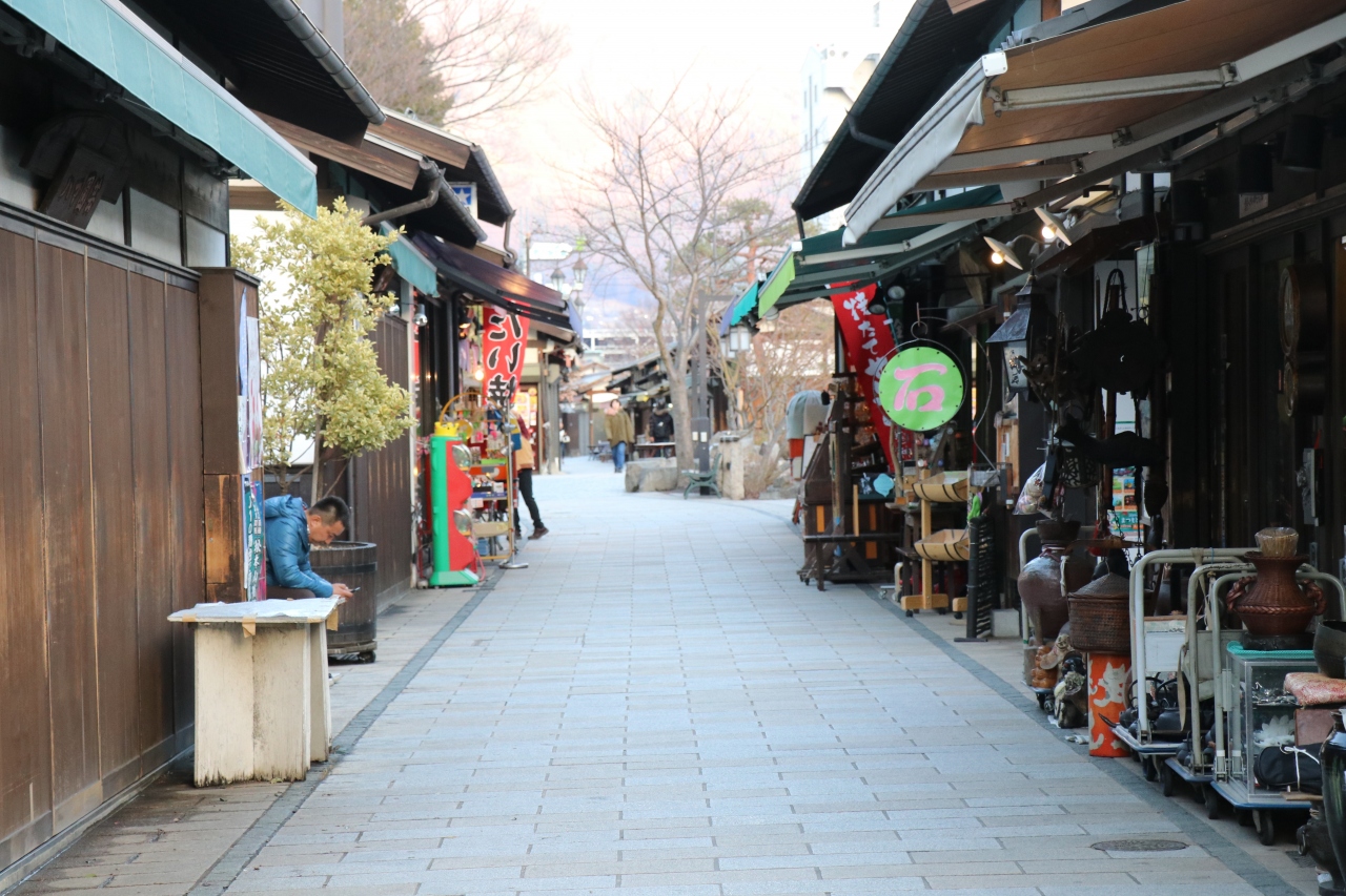 松本城に向かう道から一本脇に入ると、骨董品や玩具などを取り扱う昔ながらのお店が立ち並んでいる通りに入ります。川沿いも含めて電線がないので気分はまるでタイムスリップしたかのよう。お城に向かう前後にちょっと寄り道してみるのも悪くないかもしれません。
