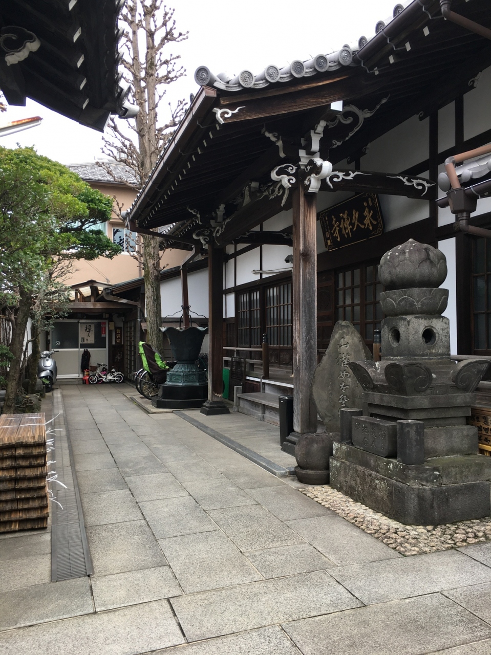 出入口には、明治時代に新聞記者等で活躍した仮名垣魯文の墓の紹介ので文章がありました。古いお墓でした。本堂は古く、前には大きな灯篭もあり、こちらも歴史を感じました。境内は本堂の他に自宅を兼ねているような建物がありました。