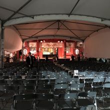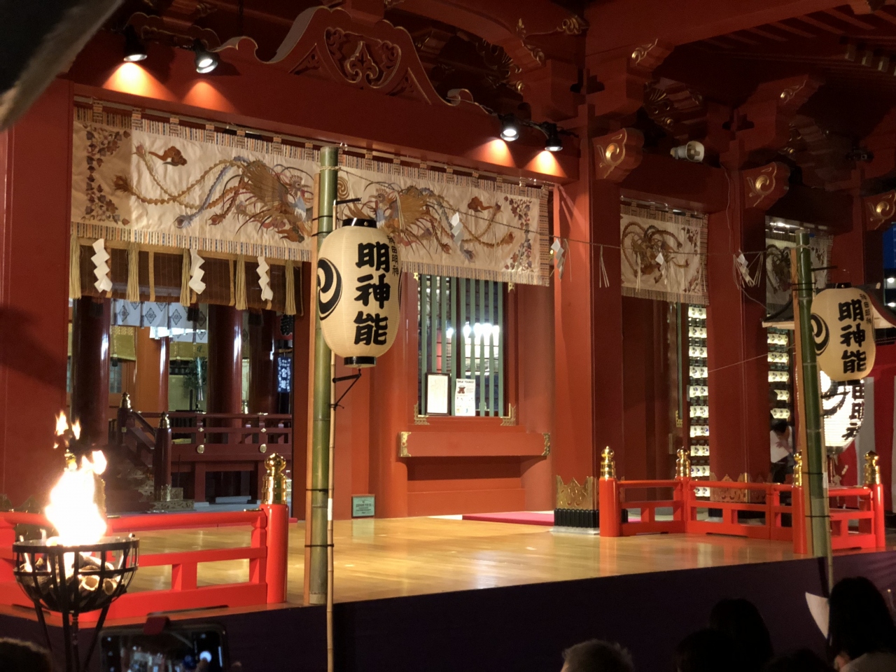 神田明神は参拝客でいつも賑わっておりますが、毎年5月になると能舞台が設置され、薪能を楽しむことができます。テントが張られ有料ですがなかなか見応えのあるプログラムです。当日でもチケットを購入できる場合もあります。春頃に神田明神のサイトをチェックしてみてください。2018年は狂言に野村万作さんが出演されていました。