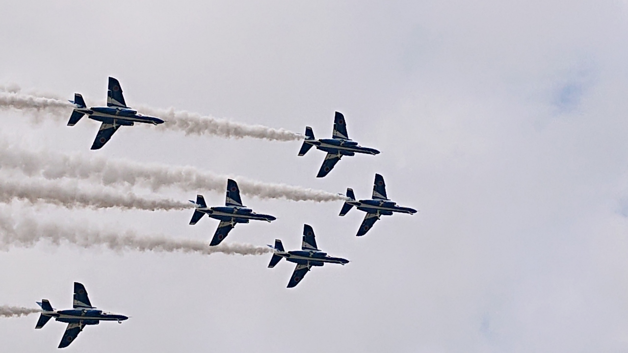空を自由に舞うその迫力と見事なチームワークの航空ショーには感激です。