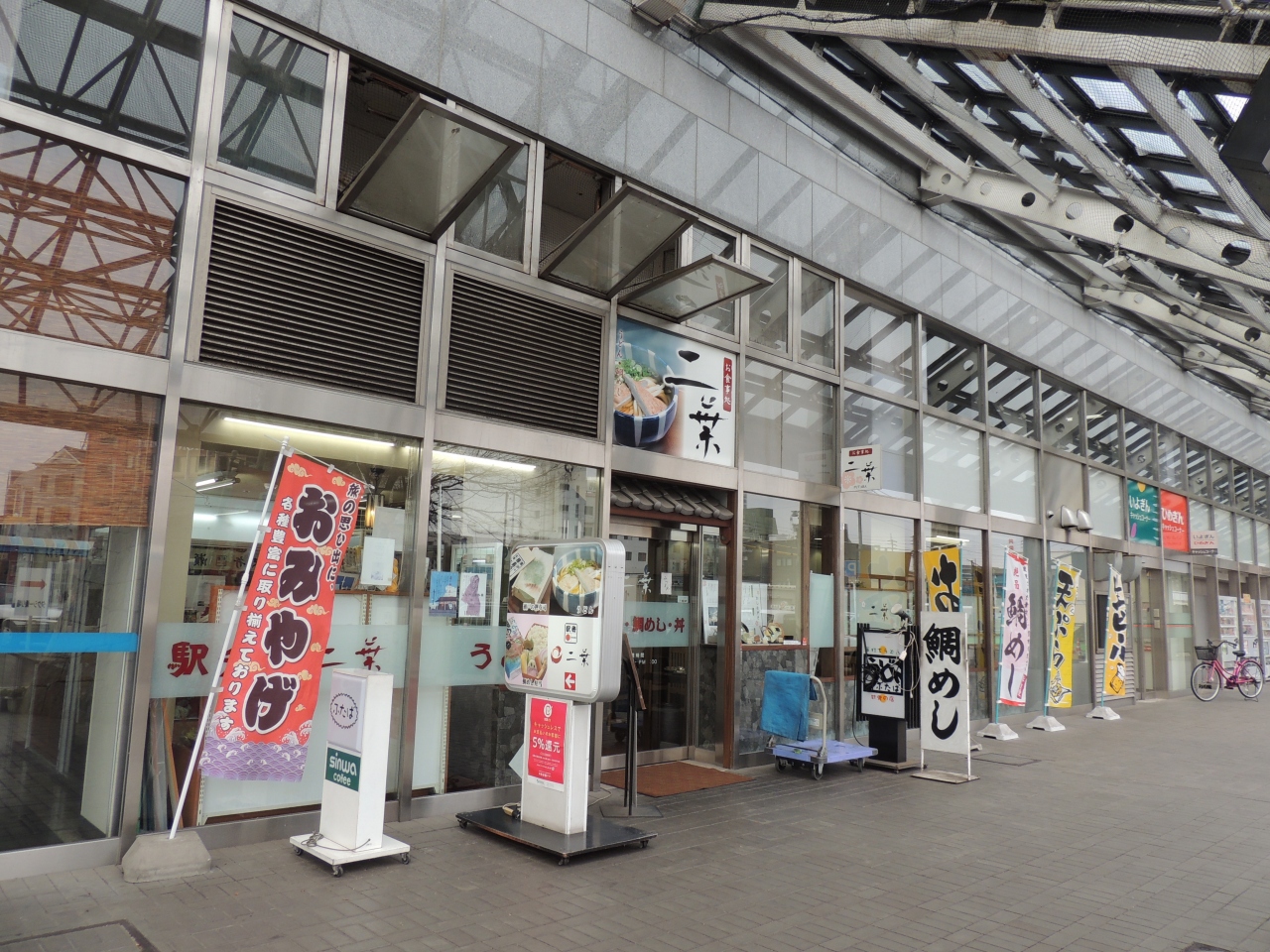 今治で鯛めしや鯛の押しずし弁当で有名なお店で、本店は今治駅の近くにあるらしいのですが、今治駅前でバスを乗り継ぐ時間に駅構内のお店でお弁当を購入しました。お弁当の種類が沢山あり、どれも美味しそうでどれにしようか迷うほど。店員の年配の女性が上品に対応してくれました。