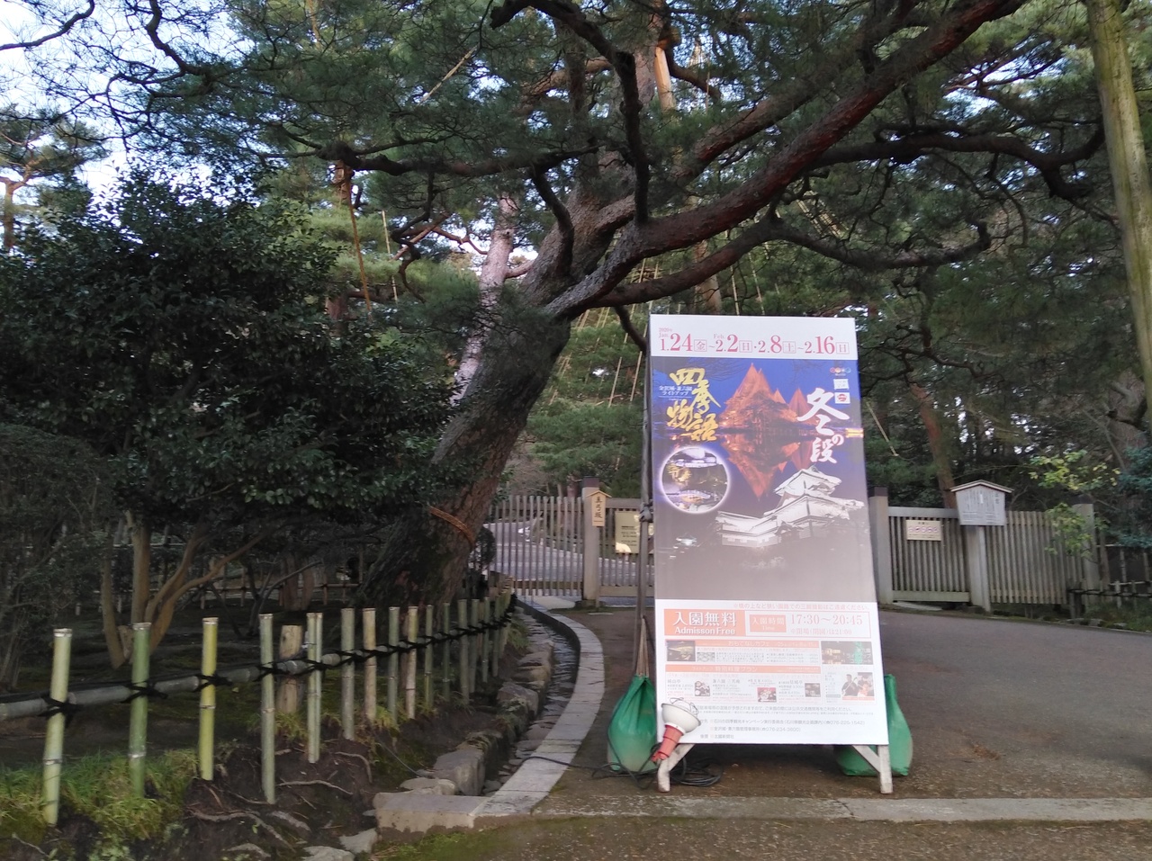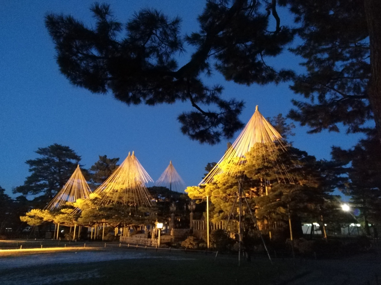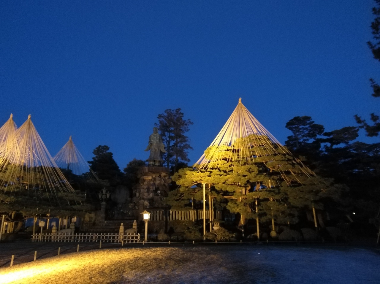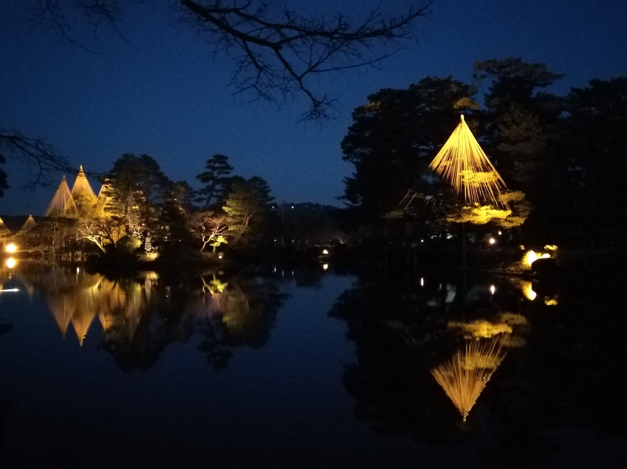 初めての兼六園ですが、運良くライトアップの期間中。前日に降った雪が所々うっすら残る程度で暖かい快晴の夕方。5時半のライトアップ開始時間を待ち真弓坂口から入場しました。無料なのも嬉しいです。団体旅行客も少なく休日ですが混雑もなく素晴しい景色を満喫できました。夕暮れから日没後の景色の変化も見る事ができ最高でした。