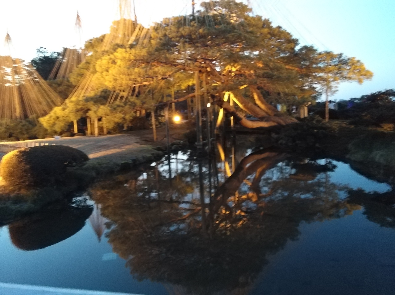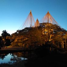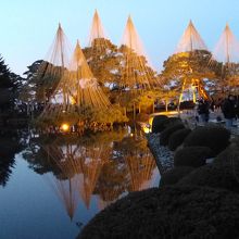 水面に映る雪吊りや松の様子は感動です。